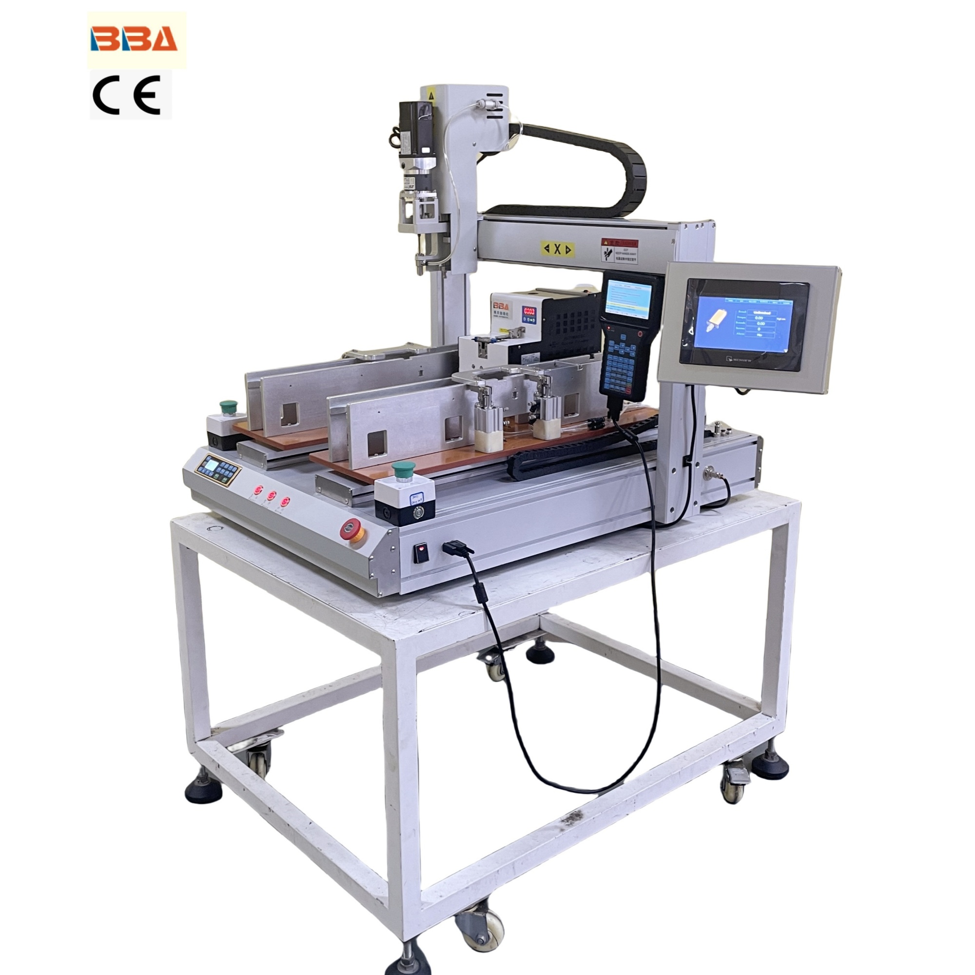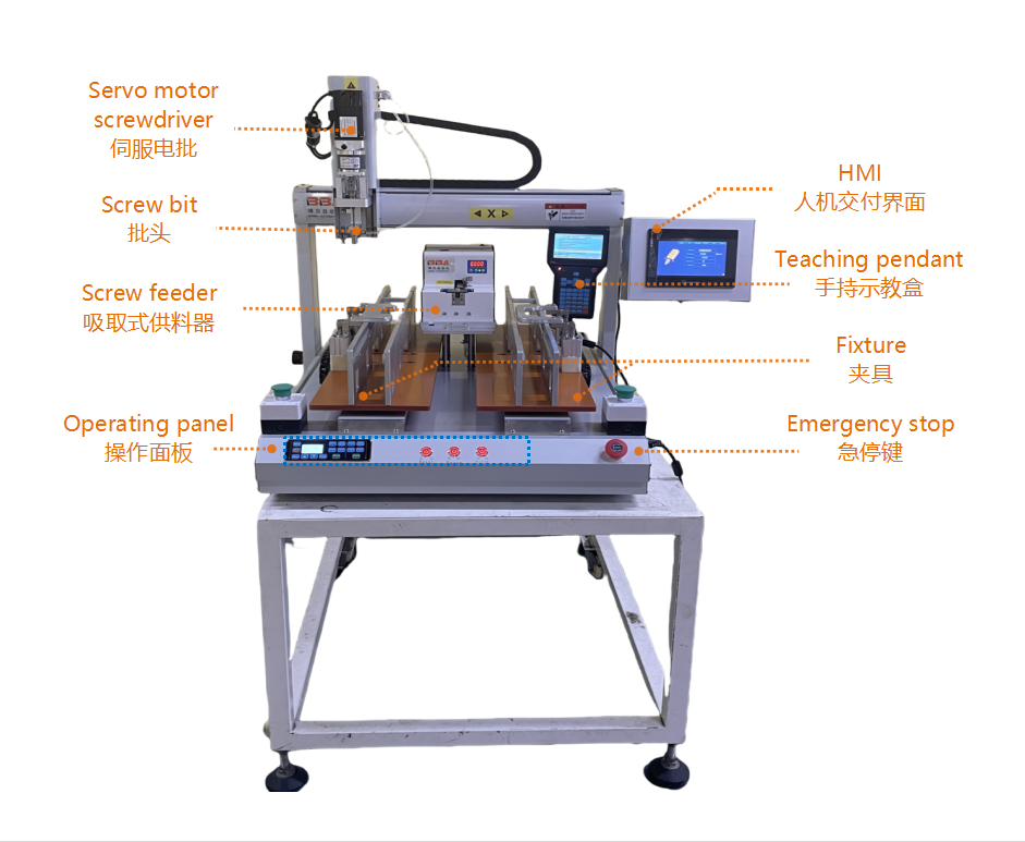 A robotic screw fastening machine with torque feedback for home appliance assembly is designed to automatically drive screws into components. Equipped with torque - sensing technology, it ensures precise tightening, preventing over - or under - fastening. This efficient device enhances assembly accuracy and consistency in home appliance manufacturing, reducing manual labor and improving production quality.